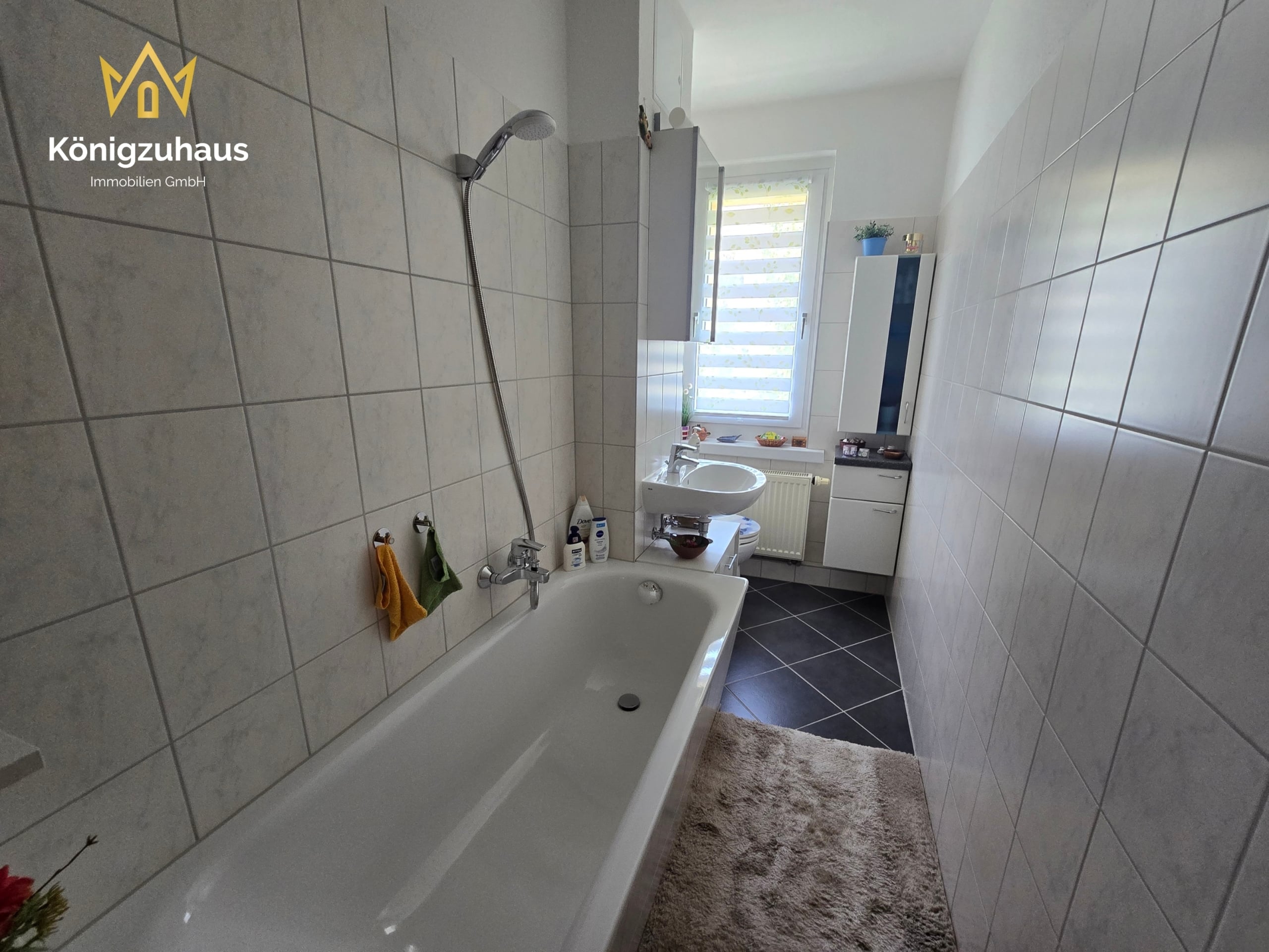 Bad mit Wanne – gepflegter Zustand, klassisch gefliest