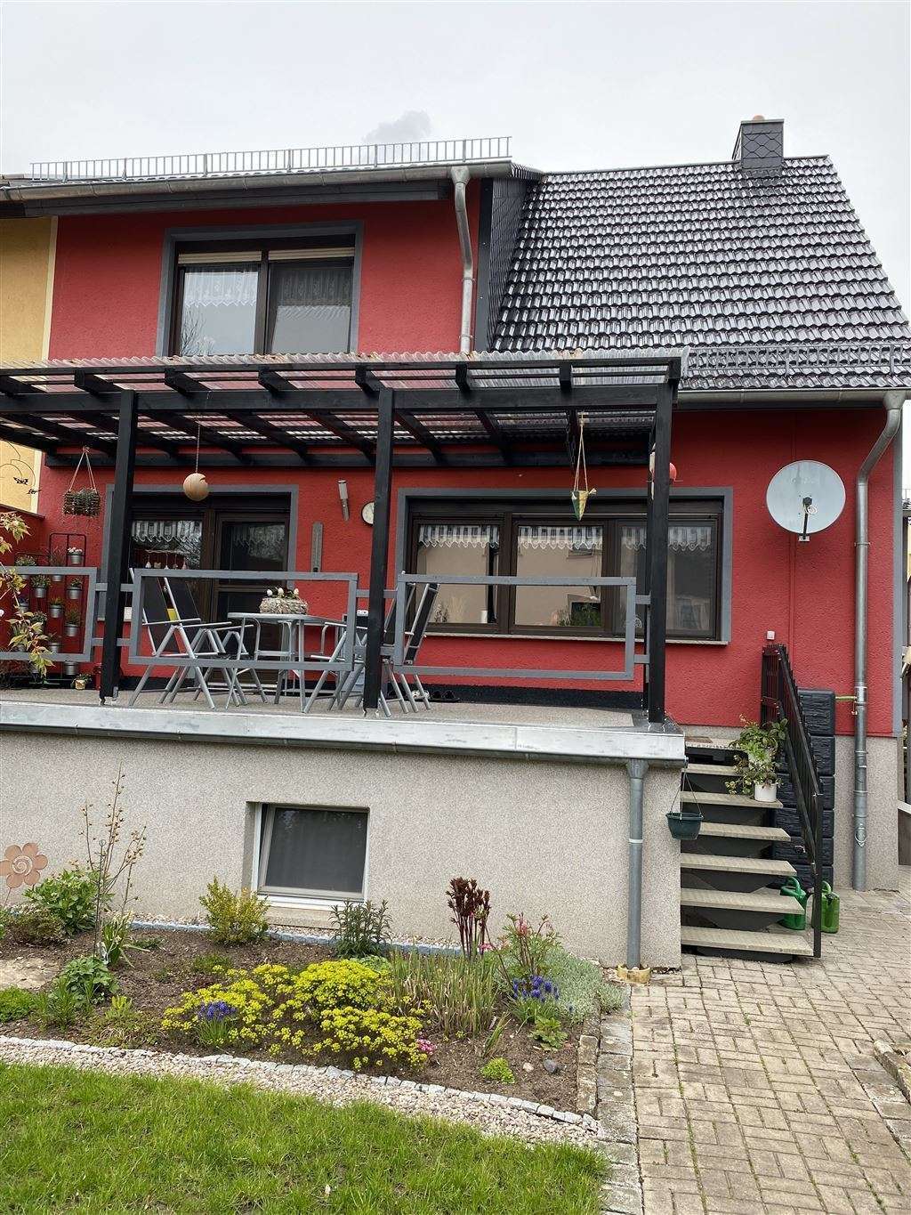 Lassen Sie den Möbelwagen vorfahren – einfach nur einziehen und sofort wohlfühlen.In ruhiger Siedlungslage von Berlstedt steht diese überaus gepflegte Doppelhaushälfte aus dem Baujahr 1987. Sie wurde auf einem ca. 396 m² großen Grundstück in Massivbauweise erbaut. Die zur Verfügung stehenden 118 m² Wohnfläche verteilen sich auf insgesamt 5 Zimmer. Die Räumlichkeiten sind vorteilhaft geschnitten, so dass Sie in keinem Zimmer das Gefühl haben, in einem Doppelhaus zu stehen.Über die gepflasterte Einfahrt gelangen Sie zur Garage, die sich unter der Immobilie im Kellergeschoss befindet und zu der Treppe, die Sie zum Eingang führt. Sie betreten die Immobilie über den wohnlichen und großzügig gehaltenen Dielenbereich, der viel Platz für Stauraum und die Garderobe bietet. Am hinteren Teil der Diele befindet sich der Zugang zur Küche. Die moderne Einbauküche, welche für den alltäglichen Bedarf auch mit einer kleinen Essecke versehen wurde, wurde vor ca. 4 Jahren von den jetzigen Eigentümern eingebaut und soll im Haus verbleiben. Von der Küche aus gelangen Sie in den Wohn-/ Essbereich. Die Zimmer wurden erst 2016 mit einem Durchbruch verbunden, sind nun offener und großzügiger gestaltet, aber optisch noch in zwei Bereiche unterteilt. Vom Essbereich aus haben Sie Zutritt zur sehr geräumigen Balkonterrasse, die Ihnen Dank der vollständigen Überdachung bei unterschiedlichsten Witterungsbedingungen das Sitzen und Essen im Freien ermöglicht. Ein Durchgang vom Wohnzimmer zurück in die Diele ist möglich, wird aber von den derzeitigen Eigentümern nicht genutzt. Im Erdgeschoss finden Sie weiterhin das im Jahr 2017 vollständig sanierte Gäste-WC mit Tageslicht.Den Zugang zum Obergeschoss erhalten Sie über eine offen gewendelte Treppe. Dort befindet sich das ursprünglich ca. 18,5 m² große Hauptschlafzimmer, welches derzeit durch eine Trockenbauwand noch einmal in einen Schlafbereich und einen weiteren fensterlosen Raum unterteilt wurde. Dieser kann je nach Bedarf als Abstellbereich für Haushaltsgeräte, Wäscheraum, begehbarer Kleiderschrank genutzt oder auch problemlos zurück gebaut werden.Die zwei weiteren kleineren, mit ca. 10 m² und 12 m² aber fast gleich großen Zimmer, eignen sich gut als Kinderzimmer bzw. können auch als Arbeits- oder Gästezimmer genutzt werden. Das Hauptbadezimmer im Obergeschoss verfügt über eine Badewanne und wurde erst 2019 in einem ansprechenden und zeitlosen Design vollständig saniert.Über die massive Treppe gelangen Sie vom Erdgeschoss ins Kellergeschoss. Dort befindet sich die Waschküche, die 2014 mit einem weiteren WC und einer Dusche ausgestattet wurde. Da sie über einen direkten Zugang zum Garten verfügt, können Sie nach getaner (Garten-) arbeit die sanitären Anlagen dort benutzen und erfrischt und sauber das Haus betreten.Im Keller befindet sich außerdem der Heizungsraum mit einer Ölzentralheizung der Marke Viessmann und den insgesamt 4500 Litern umfassenden Öltanks. Eine weitere Türe führt Sie in die anfangs erwähnte Garage. Hier haben Sie ausreichend Platz für etwas mehr als ein Auto und zusätzlichen Stauraum, beispielsweise für Ihre Fahrräder. Den hinter dem Haus befindlichen Garten, können Sie durch ein kleines Tor von der Straße aus, über die Balkonterrasse im EG oder die Waschküche im Keller betreten. Der Garten ist liebevoll und pflegeleicht angelegt und der ideale Ort, um seinen Feierabend mit Freunden und Familie zu verbringen.