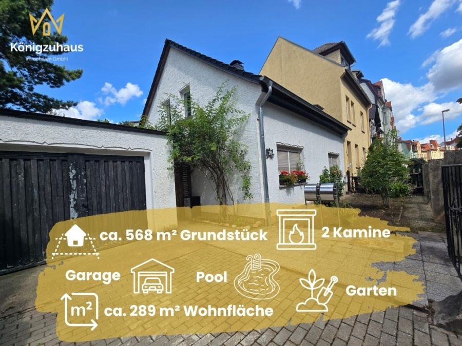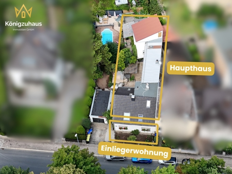 Auf einem ca. 568 m² großen Grundstück erwarten Sie insgesamt ca. 289 m² Wohnfläche, verteilt auf eine barrierearme 2,5-Raum-Einliegerwohnung und ein elegantes Haupthaus über zwei Etagen.