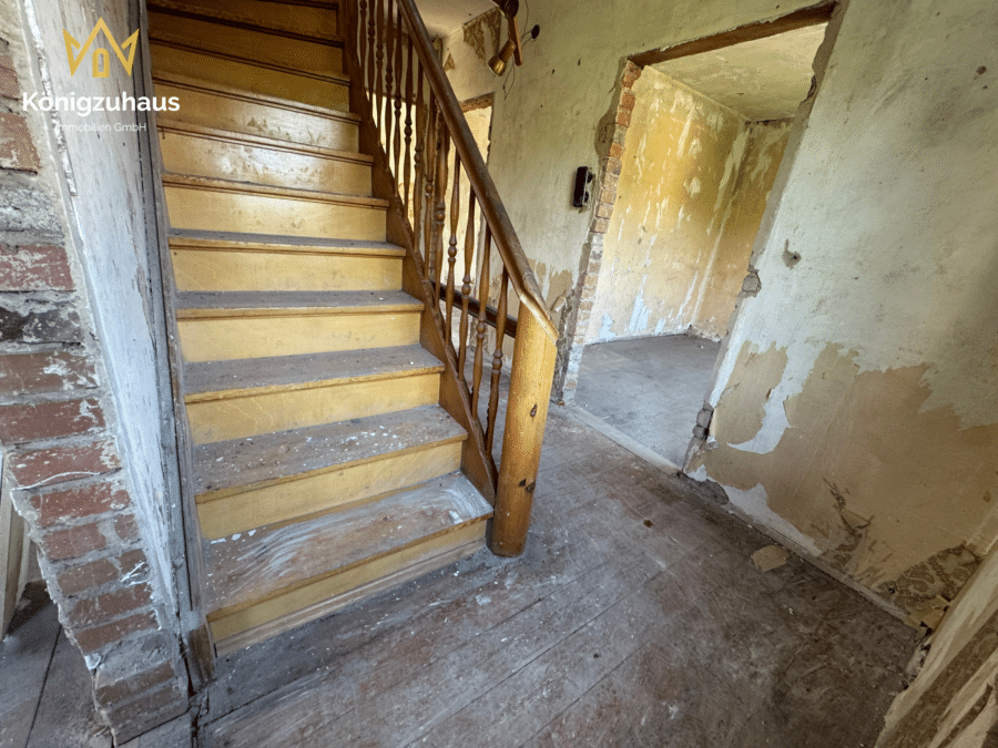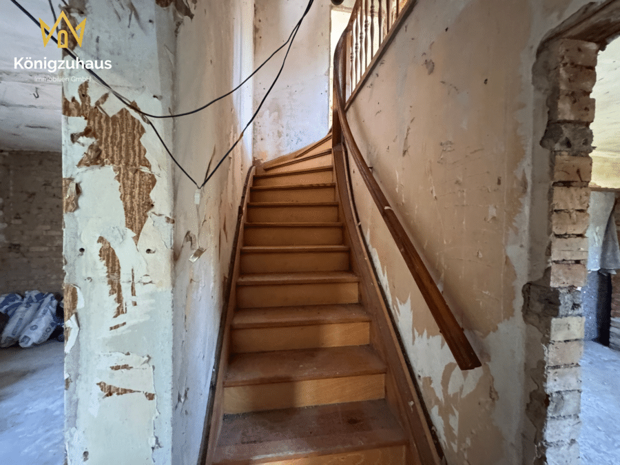 Das Gebäude wurde bereits vollständig entkernt – ein entscheidender Vorteil für alle, die ihre eigenen Vorstellungen ohne Rückbaumaßnahmen umsetzen möchten. Künftige Eigentümer können so direkt mit der Planung beginnen und die Räume nach modernen Standards gestalten.