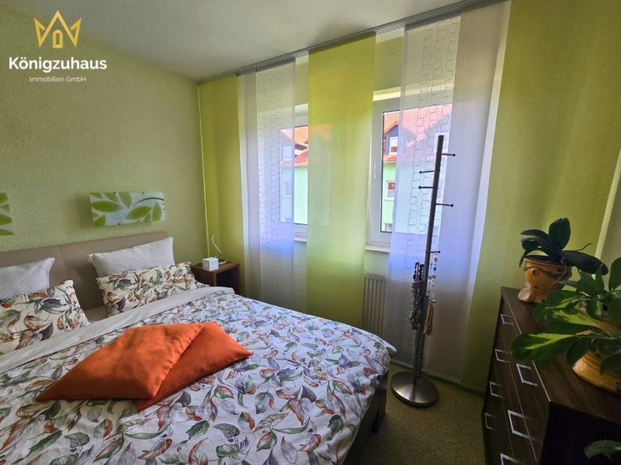 Das Schlafzimmer bietet ausreichend Platz für ein großes Bett und Schrankmöbel und wirkt dank seines Zuschnitts sehr wohnlich. Die Küche ist in einem sehr guten Zustand und lässt sich sowohl für den Alltag als auch für gemeinsame Kochabende optimal nutzen.
